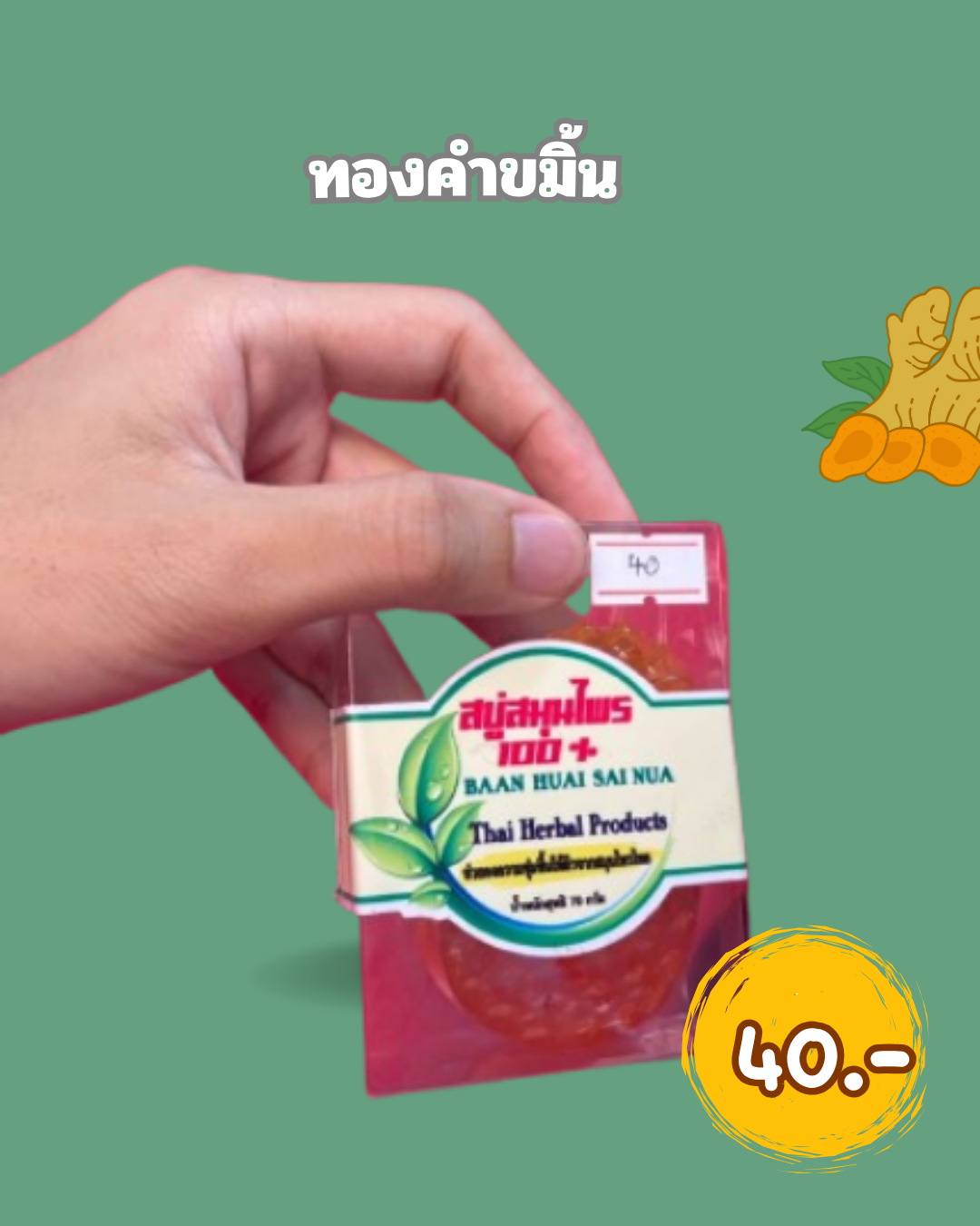 สบู่สมุนไพรทำจากขมิ้นสดและสมุนไพรธรรมชาติที่ช่วยทำความสะอาดผิวอย่างล้ำลึก พร้อมบำรุงให้ผิวเนียนนุ่ม ลดการอักเสบและช่วยให้ผิวดูกระจ่างใสขึ้นอย่างเป็นธรรมชาติ