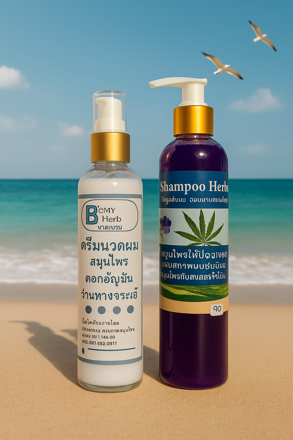🌸 แชมพูสมุนไพรอัญชันผสมว่านหางจระเข้: